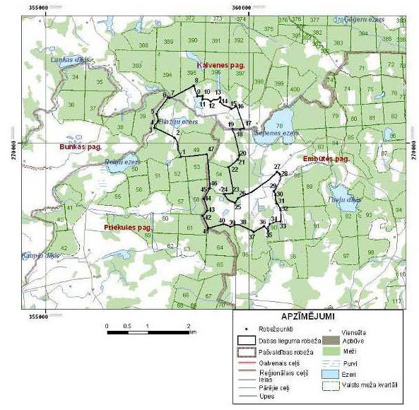 Administratīvais iedalījums: Dienvidkurzemes novada Kalvenes, Embūtes un Priekules pagasts.