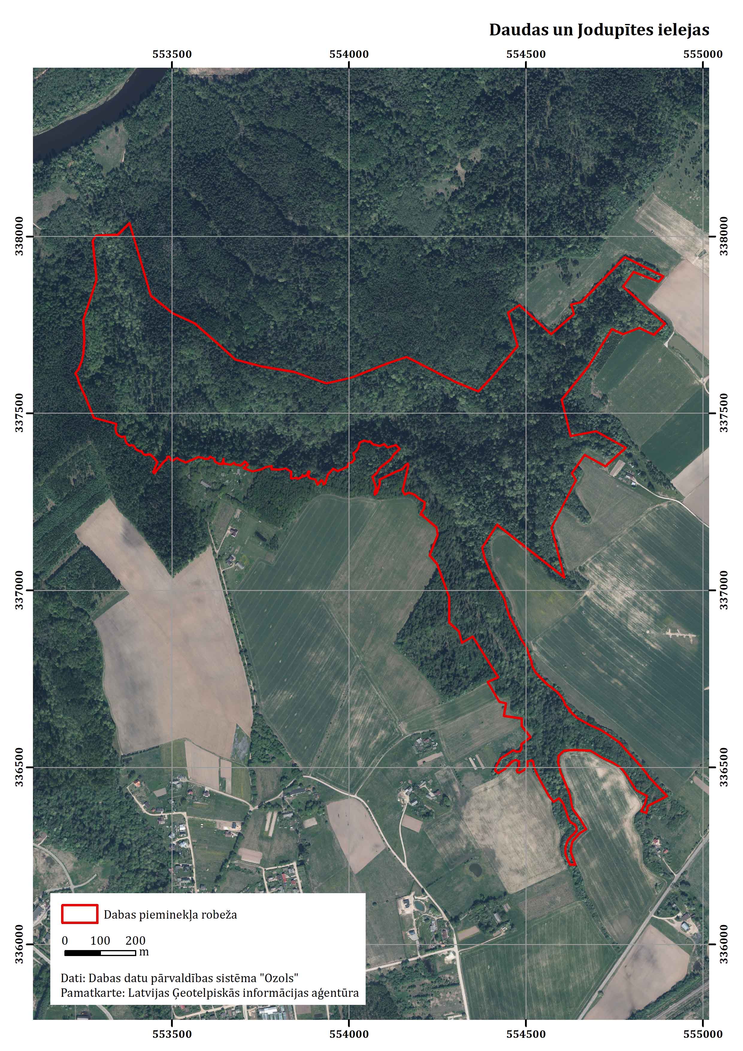 - Jodupītes ieleja gandrīz no tās sākuma (no vietas, kur tās ieleja kļūst dziļa un labi izteikta) līdz šīs upītes ietekai Daudā,