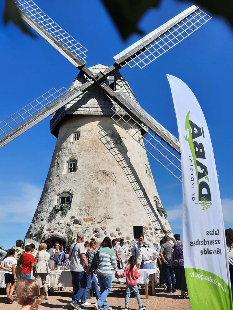 Svētki notika Āraišu dzirnavu kalnā – tās ir vecākās holandiešu tipa vējdzirnavas Latvijā, kurās joprojām var malt miltus un iepazīt latviskās maizes tradīcijas.