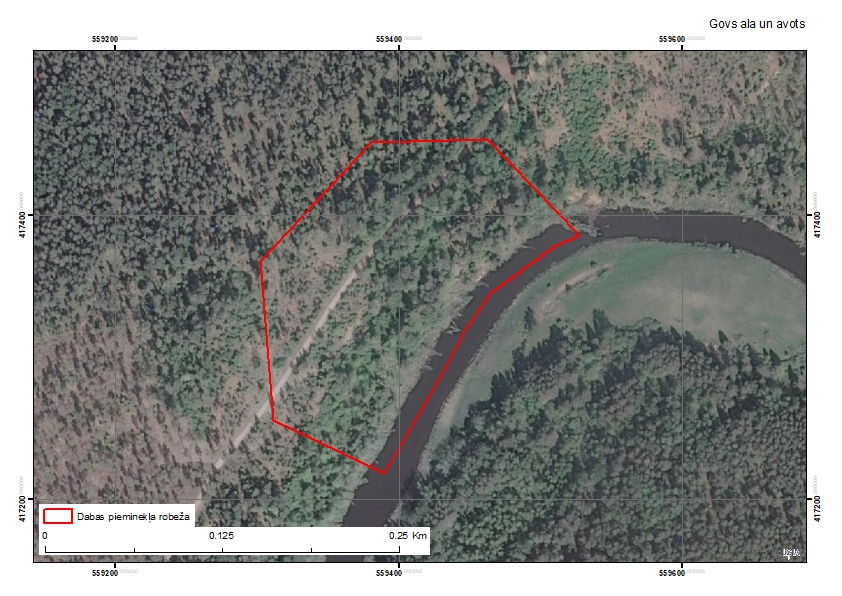 Vidusdevona Živeta stāva Burtnieku svītas paralēli slāņota un slīpslāņota smilšakmens atsegumi veido unikālu avota erozijas un fiziskās dēdēšanas veidojumu – cirkveida klinšu ieloku, aptuveni, 20 m diametrā ar pārkari un, nobrukumu rezultātā izveidojušos, smilts materiāla konusu ieloka centrā. Ieloka dziļumā atrodas plaša niša, kas turpinās kā ala un dziļākajā daļā ir pildīta ar avota ūdeni. Ieloka dienvidu malā, nogāzes lejasdaļā ir Mazā Govs ala – šaura un zema, 4 m gara ala. Iezī novērojamas līdz 1 m biezas slīpslāņojuma sērijas, kas šķērsgriezumā ir kā muldveida struktūras.