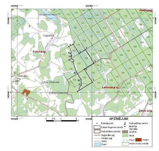 Teritorijas lielāko daļu aizņem meliorācijas rezultātā degradēts augstais purvs, kurš apaug ar priedi. Teritorija ietver arī distrofu ezeru ar nelielu pārejas purvu. Perifērijās skujkoku, jauktie un fragmentāri lapkoku meži, kas ir vienīgie biotopi, kas piemēroti dažām retām putnu sugām (sastopama - mežirbe, baltmuguras dzenis, pelēkā dzilna). Teritorija ļoti piemērota lielajiem zīdītājiem, sastopami vilki un meža caunas.