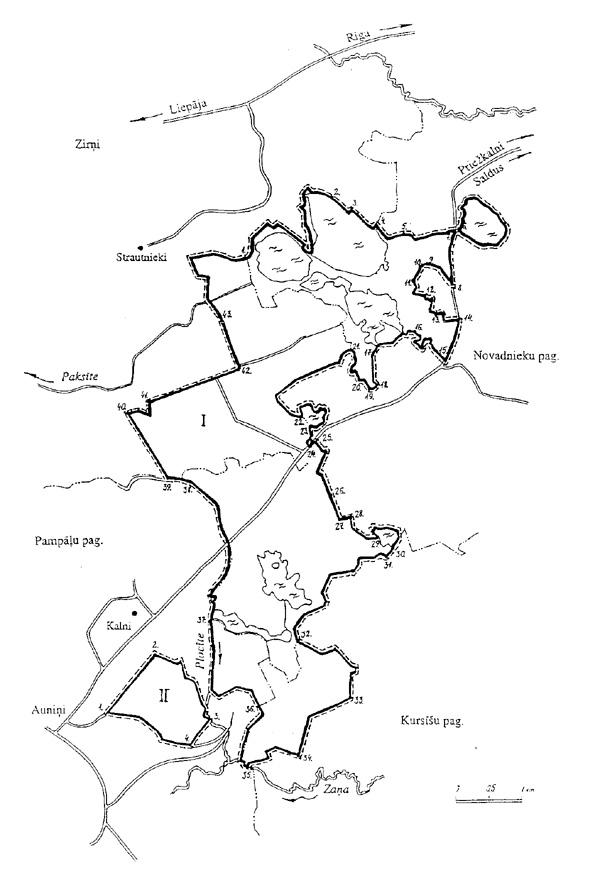 Administratīvais iedalījums: Saldus novada Pampāļu, Zirņu, Kursīšu un Novadnieku pagasts