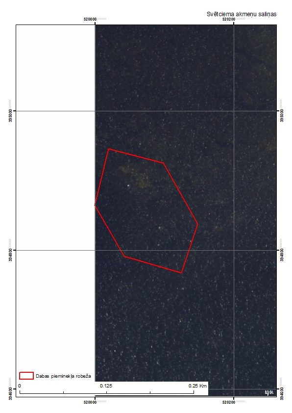 Dabas pieminekli pamatā veido zemūdens akmeņu krāvumu valnis, sastāvošs no magmatisko un metamorfo iežu laukakmeņiem, ko ledus krāvumi un pavasara vētras sastūmuši valnī. Valnis ir orientēts paralēli krastam - tā augstākās daļas garums ir 150 m, turpinājums abos galos sēklī. Parasti saliņas augstāk novietotie akmeņi ir redzami, bet reizēm atrodas zem ūdens. Lielāko akmeņu caurmērs ir 1 - 1,5 m. Saliņa, pēc nostāstiem, lēnām tuvojas krastam, to aizsargājot no viļņu iedarbības.