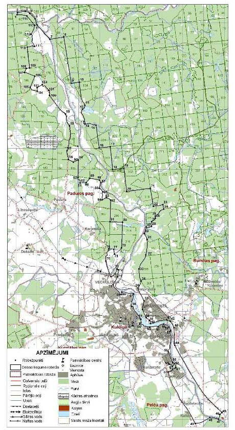 Administratīvais iedalījums: Kuldīgas novada Pelču, Padures un Rumbas pagasts un Kuldīgas pilsēta